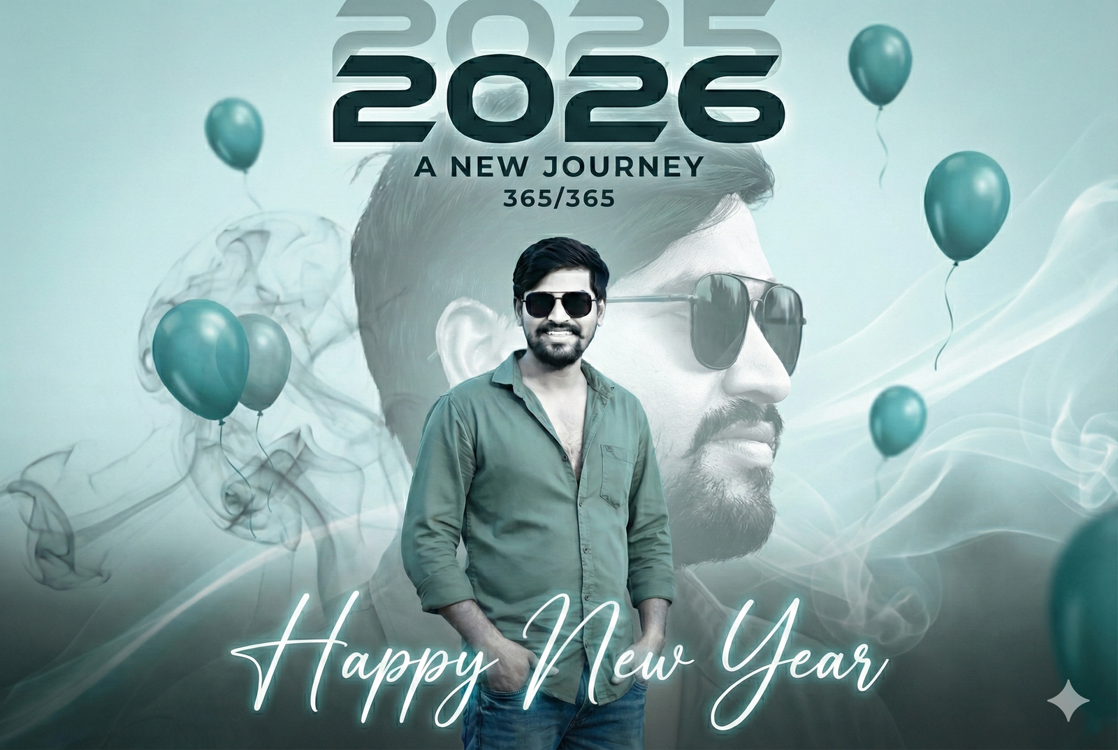 No blur, no cartoon, no anime, no distortion, no extra fingers or limbs, no watermark, no text other than “HAPPY NEW YEAR 2026”, face change, different person, face morphing, beauty filter, skin smoothing, overexposure, underexposure, unrealistic lighting